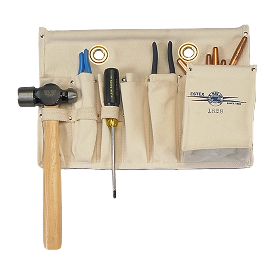 Estex has designed a series of tool aprons with multiple pocket configurations to fit inside the bucket. They were designed to fit flat against the liner to minimize interference with line work yet maximize a linemen's ability to reach the necessary tools. Each apron has a non conductive rod in the top for support as well as two brass grommets. If you don’t see the product you’re looking for, Estex can create it for you to your exact specifications.