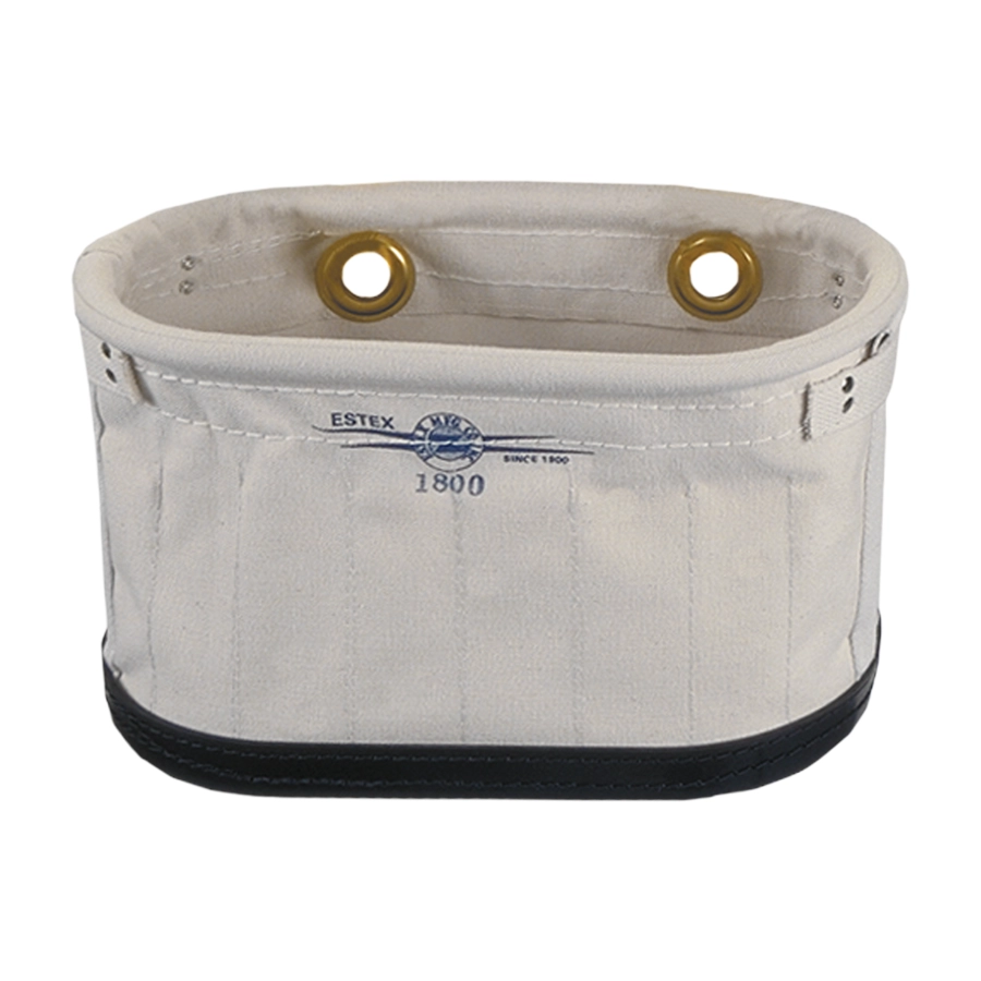 This oval shaped tool bag hangs on the aerial lift bucket with attachment hooks. There is a PVC ring in the top to shape the opening and PVC supports onthe sides to keep the bag open. Six hand tool pockets on the inside of the bag organize tools for easy access. Holes for attachment hooks are reinforced with brass grommets. The bag has a sturdy plastic bottom with drainage holes. If you don’t see the product you’re looking for, Estex can create it for you to your exact specifications.