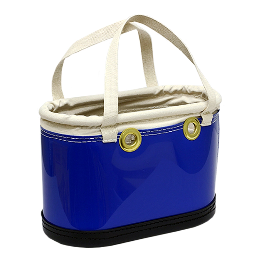 This oval shaped tool bag hangs on the aerial lift bucket with attachment hooks. There is a PVC ring in the top to shape the opening and Hard Body plastic on the sides to keep the bag open and rigid. Fifteen hand tool pockets on the inside of the bag organize tools for easy access. Holes for attachment hooks are reinforced with brass grommets. The bag has a sturdy plastic bottom with drainage holes. There are two handles for carrying the bag. If you don’t see the product you’re looking for, Estex can create it for you to your exact specifications.