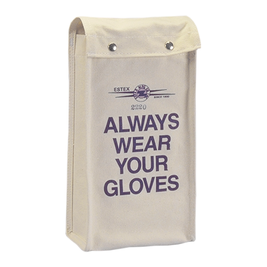 This bag is made from #10 canvas duck and is double stitched on all seams. There is a flap over the top with snap fasteners. On the back there is a quick release snap for attachment to belt which is reinforced inside and outside with leather. Both the snaps and quick release snap are nickel plated to prevent rust. The rivets are capped to prevent scratching of the rubber gloves. Grommets in the bottom provide drainage. Stress points have extra stitching for durability. If you don’t see the product you’re looking for, Estex can create it for you to your exact specifications.
