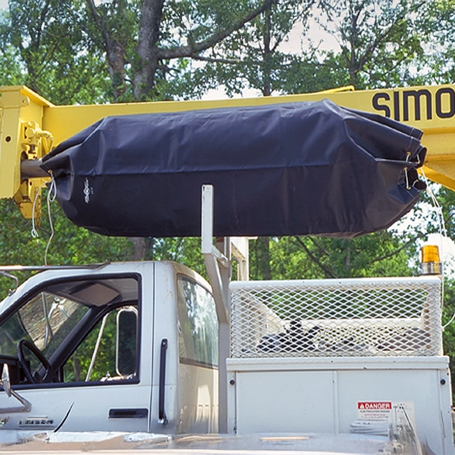 Designed to be fully opened at both ends and to be placed around the auger of a typical digger derrick truck. The cover catches dirt that has stuck to the auger and prevents it from falling into the truck bed or from falling off the truck entirely and striking passing vehicles. Many other sizes and styles are available, please call Estex with your requirements. If you don’t see the product you’re looking for, Estex can create it for you to your exact specifications.