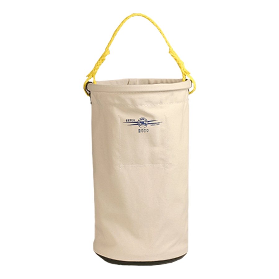 All Estex tool buckets are made of heavy duty canvas or vinyl coated nylon for long wear and use. The top ring is a single piece metallic material designed to stay open even under severe and continuous load. The bottoms are made of high impact polymer resins or leather. The bag has leather side supports at the rope holes and a unique Estex feature whereby the bottom is stitched on and the body of the bag is folded back over the stitches to protect the threads from abrasion and excessive wear. This has the added benefit of providing a smooth padded area at the bucket bottom. Otherwise, your bucket becomes a rough sharp source of wear on the bucket truck and on the aerial bucket. The bucket also has Strong UV and rot resistant rope handle. If you don’t see the product you’re looking for, Estex can create it for you to your exact specifications.
